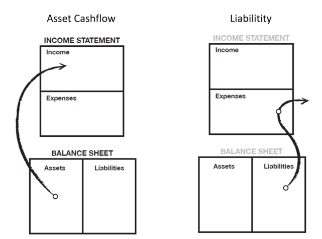 It all comes down to how much assets you have versus liabilities. Robert Kiyosaki’s concept of assets and liabilities differs from conventional definitions. Anything that puts money into your pocket is an asset and anything that takes money from you is a liability. See the diagram and video below. A car that you purchased would be considered an asset in conventional finance. However, if we look at it based on Robert Kiyosaki’s definition, the car would only be an asset if it was rented out and you received income from it. If the car was purchased for regular commuting and we had to pay for gas and maintenance, money is “flowing” out from our pockets and should be considered a liability (Kiyosaki, Rich Dad Poor Dad, 2011, p. 46).